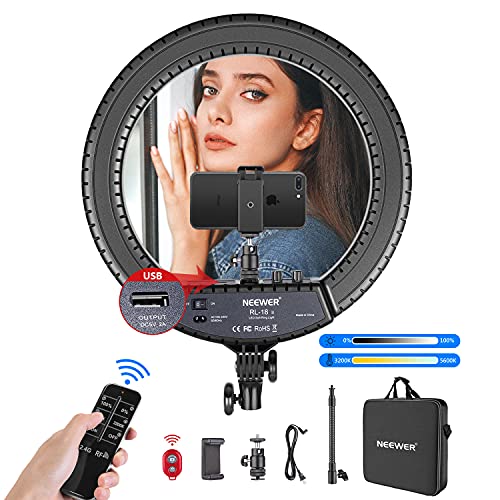 etsy Neewer 18-Inch LED Ring Light with 2.4GHz Wireless Remote, 55W 3200K~5500K Ringlight with Soft Tube/Phone Holder/Ball Head for Vlog/Selfie/Video Shooting, Support USB Charge